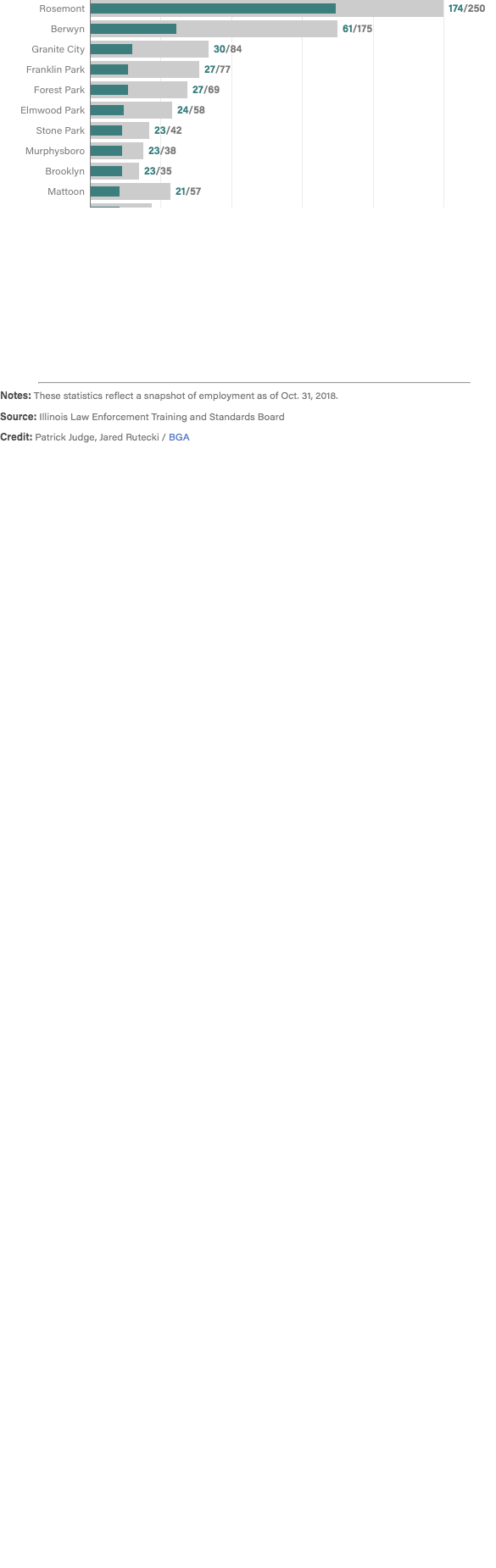 Of Illinois’ more than 900 police departments, only 77 employ auxiliary officers. Unlike everyday officers that require rigorous academy training, most auxiliary police are only required to complete a 40-hour firearm training course before they are authorized by a police department to carry a weapon. There are few other restrictions on how departments utilize them, although only about a half-dozen municipalities give them full authority to make arrests.